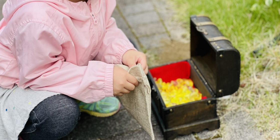 海賊からわたされたヒントを頼りに、会場に隠されている5種類の秘宝をさがしだそう!全部集まったら、もう一つの秘宝が隠されているミッションクリア!